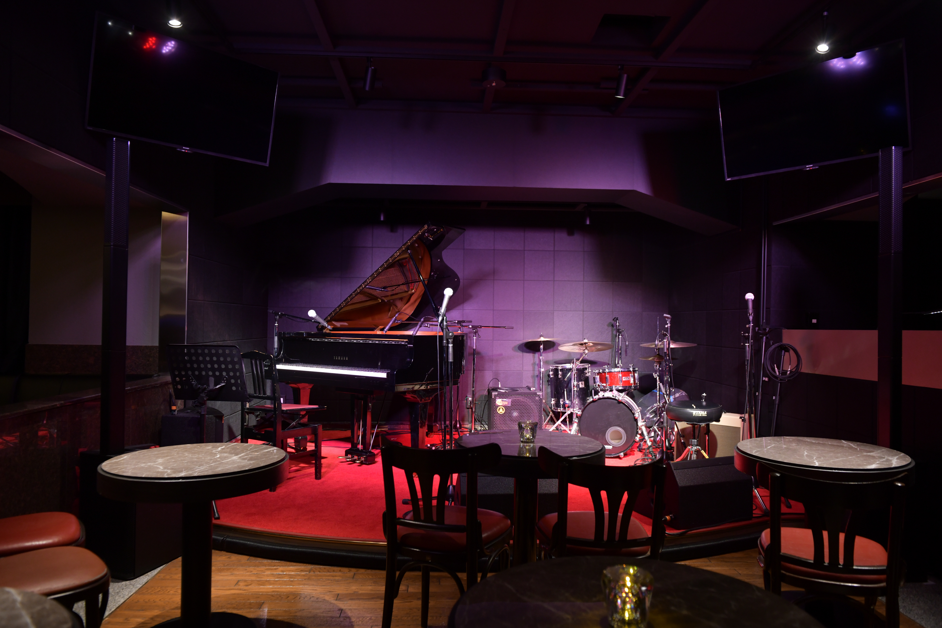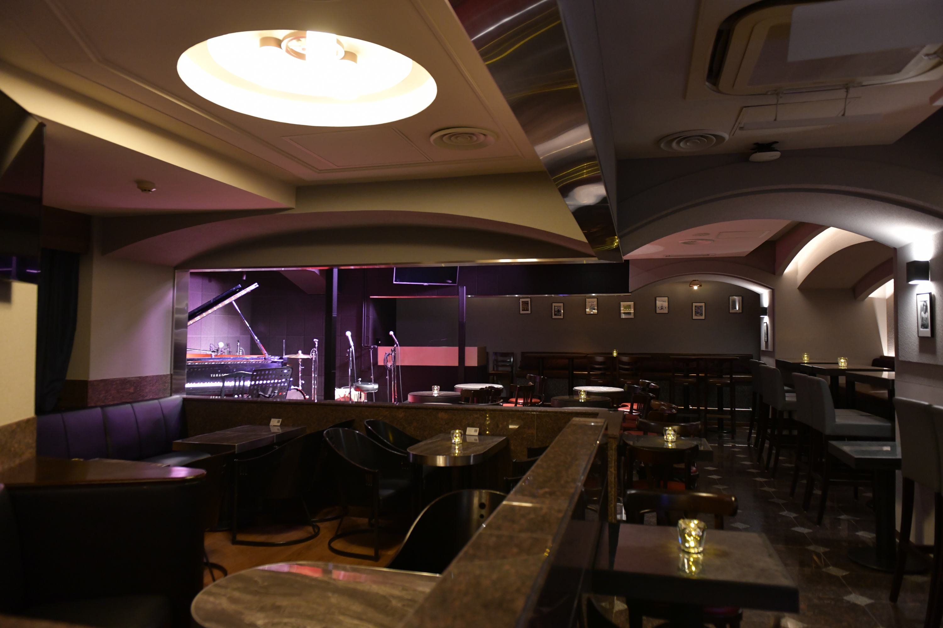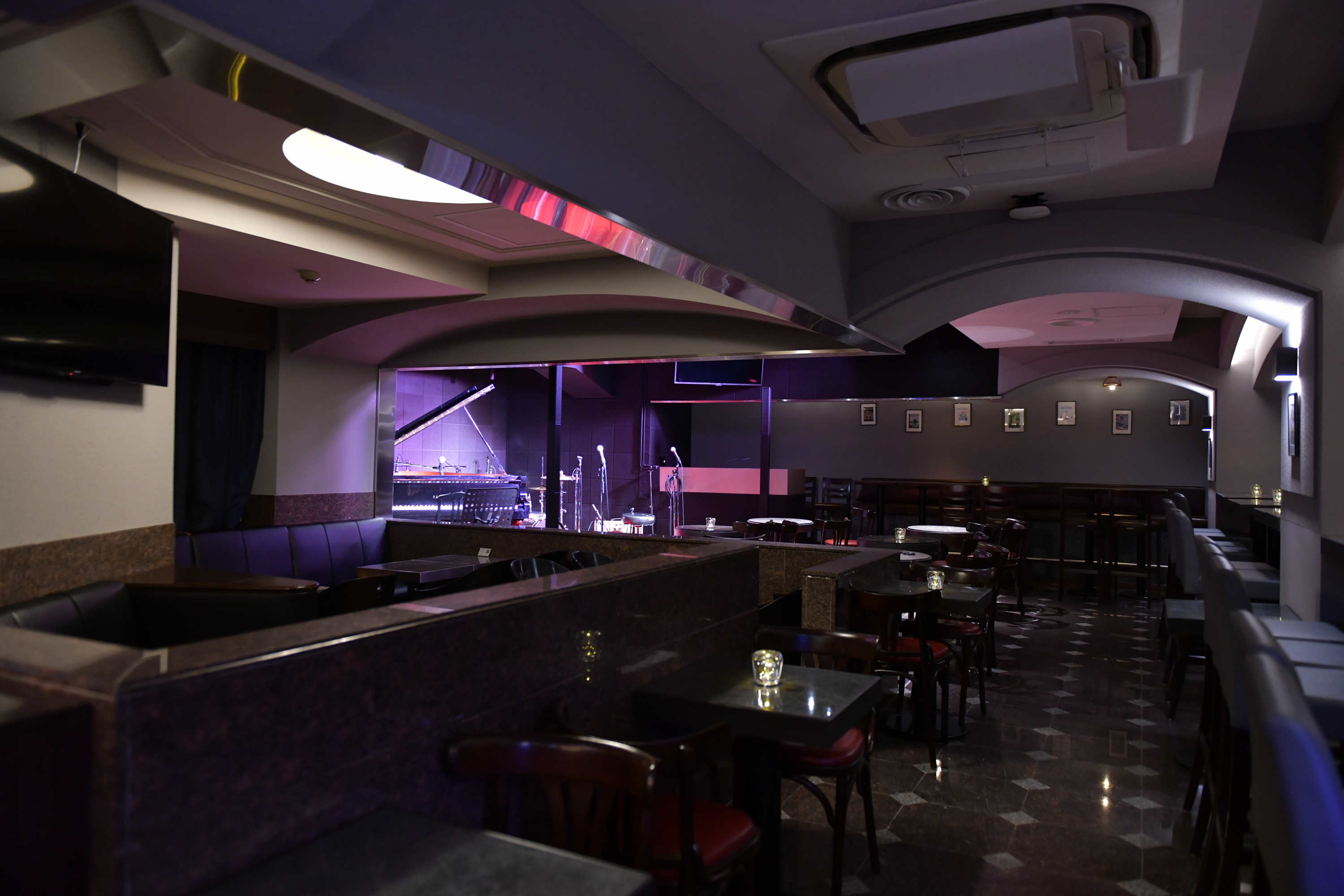 店内に入ると広いフロアとステージにあるピアノが出迎えてくれます🎹
